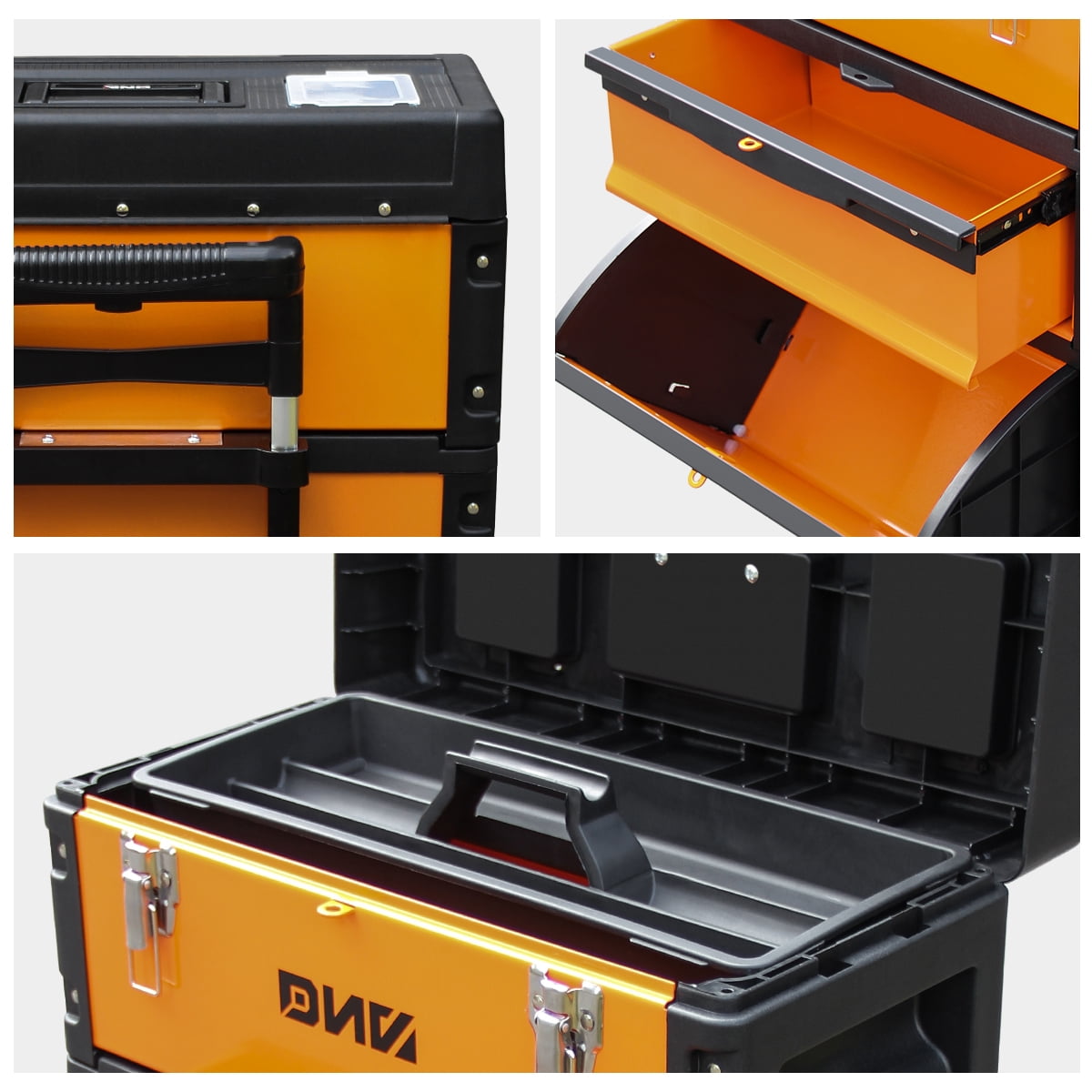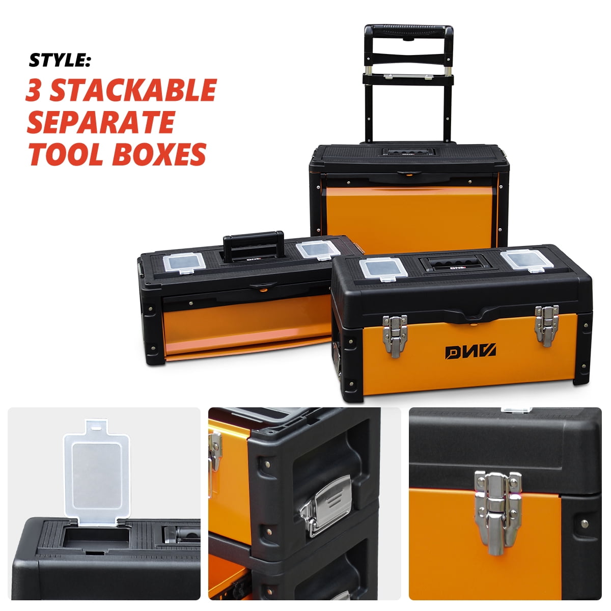 Dna Motoring Odaof Tools 00004 Orange Black 3 Tier Stackable Storage Tool Box Rolling Extendable Handle Trolley 49cm W X 63 3cm H X 23cm Walmart Com