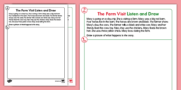 Pre K Reading Passage The Farm Visit Listen And Draw